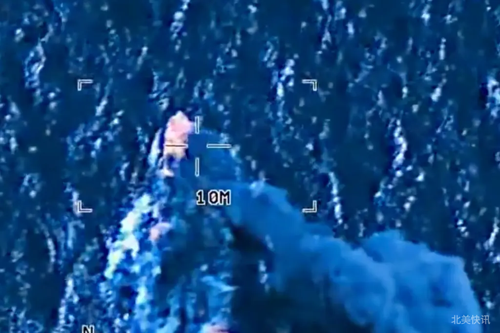 美国南方司令部公开片段显示:快艇在海上高速行驶时遭导弹精准打击,瞬间爆炸沉没。军方称该船“隶属恐怖组织,沿已知毒品走私路线航行”。