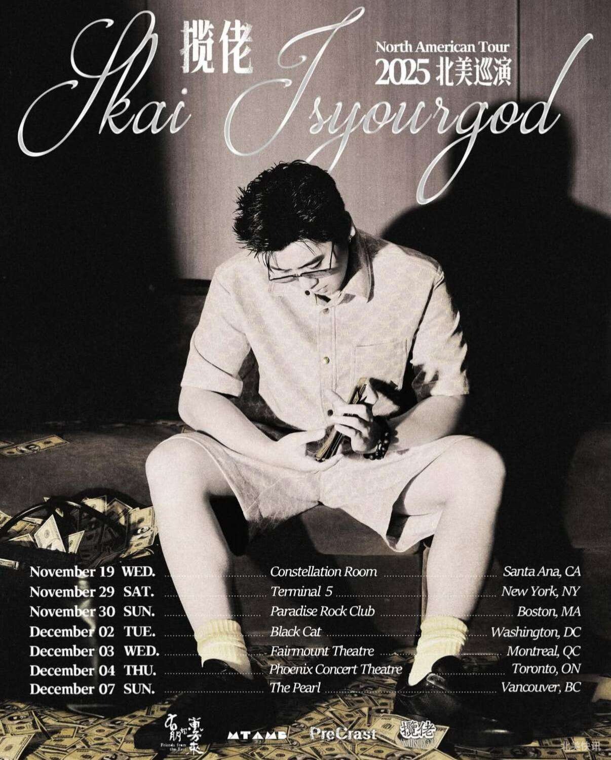活动详情-Event details:揽佬 SKAI ISYOURGOD 杀到北美啦!来自广东惠州的说唱狠人,终于要把“粤式孟菲斯”的炸场气息带上北美舞台!他以独树一帜的 flow 和态度,把广府民俗、潮汕腔调与 Trap 节奏混成了全新的语言体系。那种既古怪又上头的韵律、一秒入魂的 Hook、带着岭南湿气与烟火味的狠词,就是他独有的“神级配方”。每一站都注定是炸场现场,北美的兄弟姐妹们,准备好跟揽佬一起摇起来了吗?