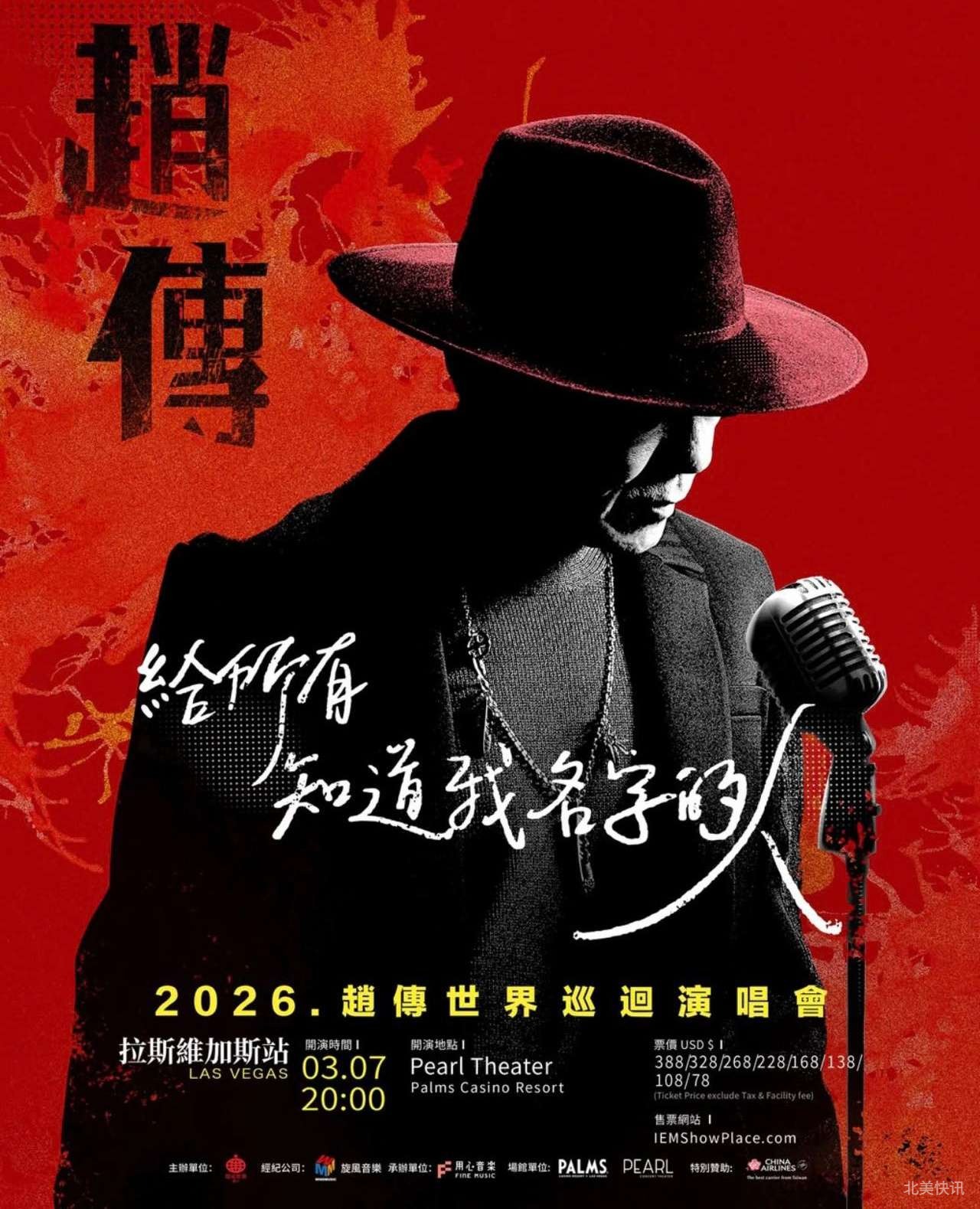 活动详情-Event details:华语乐坛的传奇——赵传,终于要带着他的《给所有知道我名字的人》世界巡演,首次唱响北美,第一站就在我们大洛杉矶!这绝对是2026年开年不能错过的音乐盛事,一起重拾摇滚初心吧!