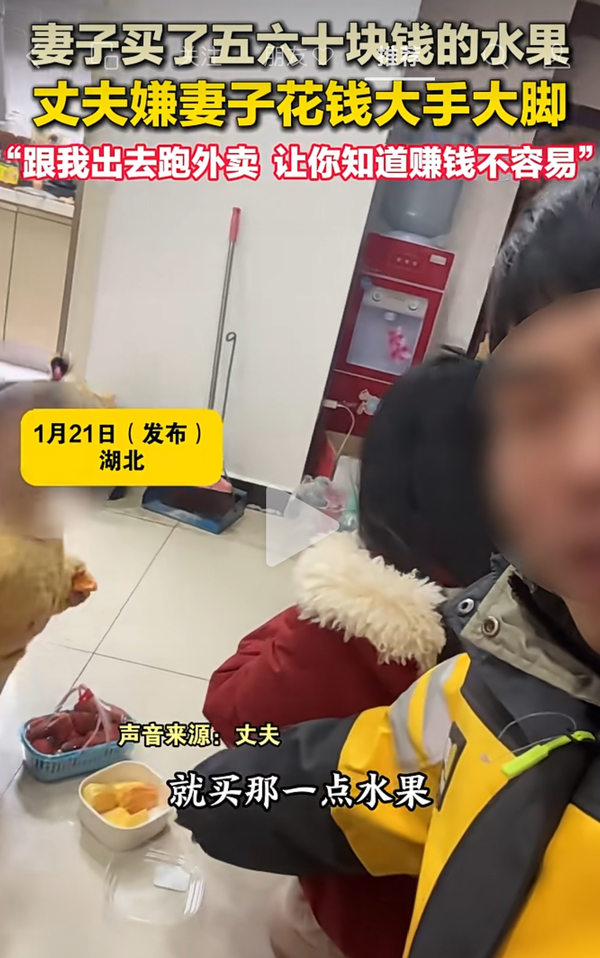 近日,一段家庭对话在社交平台引发热议,折射出普通家庭的生计焦虑与相处困境。一位外卖小哥丈夫下班回家,看到妻子买回来的一袋水果,得知花费五六十元后,瞬间情绪失控,指责妻子花钱大手大脚,语气带着疲惫与无奈:“跟我出去跑一趟外卖,让你亲身体验下,就知道这钱赚得有多不容易!”