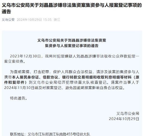 记者梳理发现,义乌公安在同类案件通报中确实有公布嫌疑人全名的惯例。例如2024年12月30日,义乌公安曾发布“关于刘晶晶涉嫌非法集资案集资参与人报案登记事项的通告”,该案同样属于非法集资类案件,通报中也明确公布了犯罪嫌疑人“刘晶晶”的全名,与此次王俊凯案的通报表述一致。