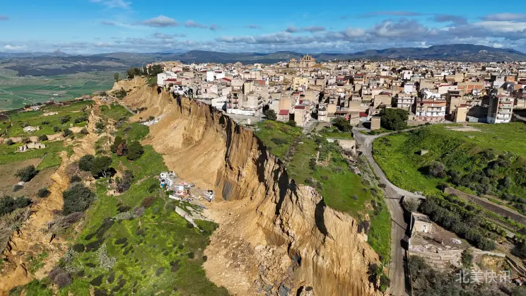 意大利西西里岛西南部的 尼塞米镇(Niscemi) 因飓风“哈里”带来的持续暴雨,发生 长达2.5英里(约4公里) 的大规模山体滑坡。大量房屋、汽车从新形成的悬崖坠落 22码(约20米) ,另有数百栋建筑 悬在滑坡边缘,全镇1500多名居民被迫紧急撤离。