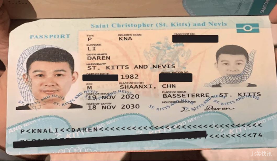 | 李某国籍 | 中国 + 圣基茨和尼维斯 |