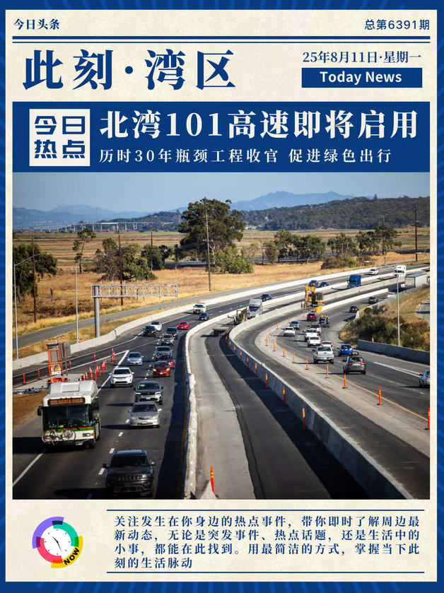 从旧金山(San Francisco)沿着101号高速公路一路向北,穿过金黄马连县(Marin County)的山丘和湛蓝海湾,即将迎来历史性变革——数英里的崭新共乘车道将在数周内开放使用。这是历时30年的大工程,也是北湾地区最大的交通项目,旨在缓解瓶颈路段拥堵,改善通勤体验。