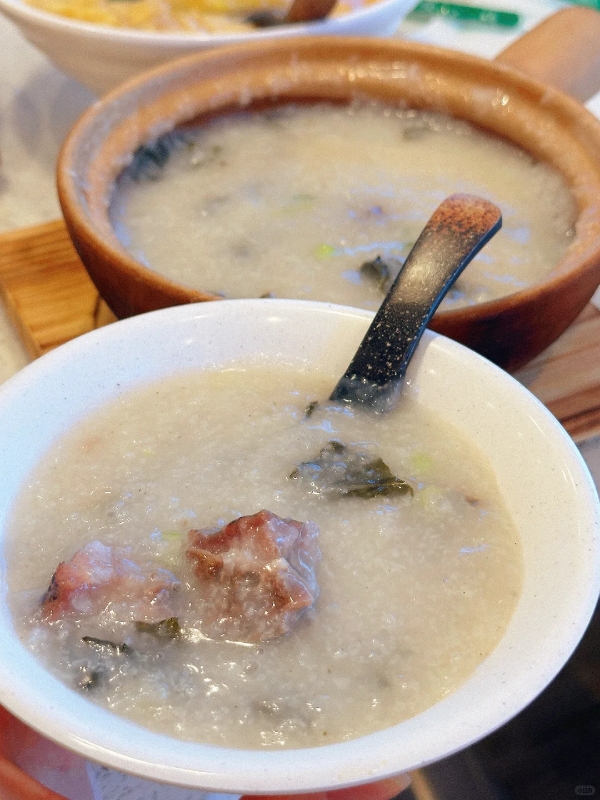 🍚菜干烧骨砂锅粥:广东人的DNA动了!喝一口就想家,配肠粉太绝了!