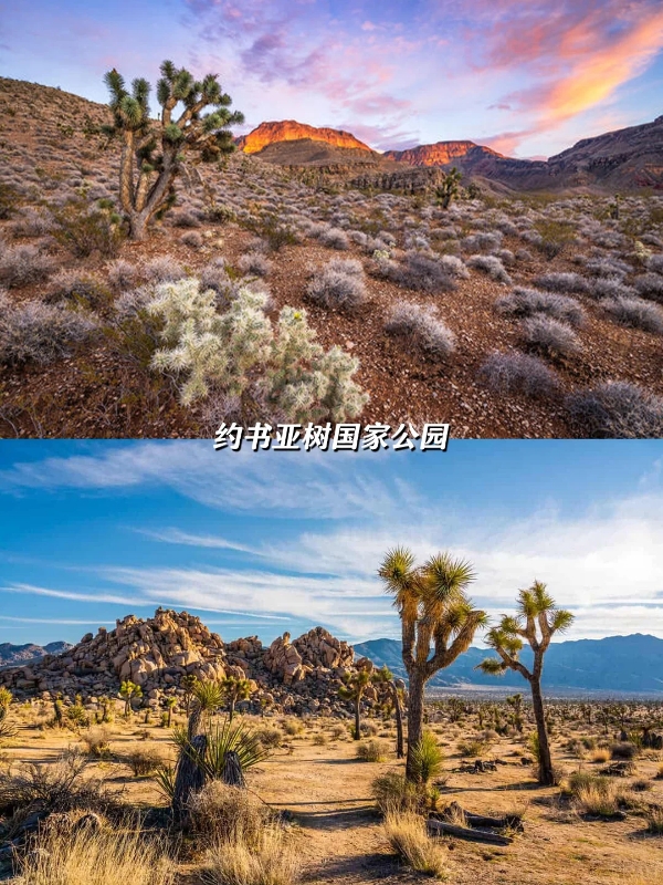 1⃣ 约书亚树国家公园:踏入这里,仿佛走进疯狂动物城!巨型仙人掌高耸入云,约书亚树宛如外星生物,充满奇幻色彩。徒步Hidden Valley Trail,1小时就能登顶,俯瞰沙漠全景的那一刻,所有的疲惫都烟消云散。记得带上2L水和能量棒,补充体力继续探索~
