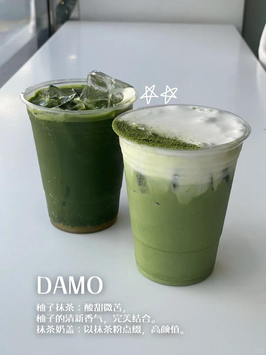 1.DAMO 다모:柚子抹茶少见,爱柚子清香可试,但我不爱;抹茶奶盖,微苦抹茶与奶盖搭配,可惜冰多,杯子见底快。