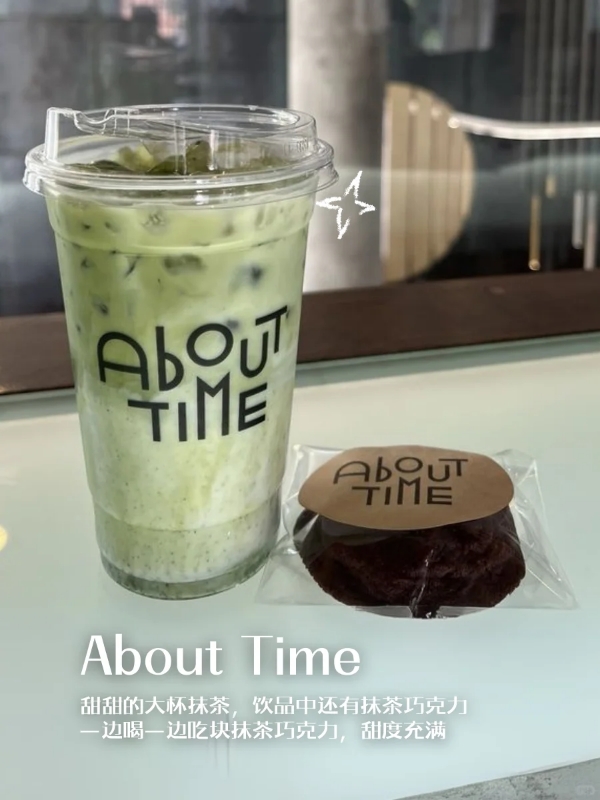 3.About Time:抹茶拿铁偏甜,像甜绿茶,还加了抹茶巧克力,甜上加甜,不符合我对微苦抹茶的追求,不推荐。
